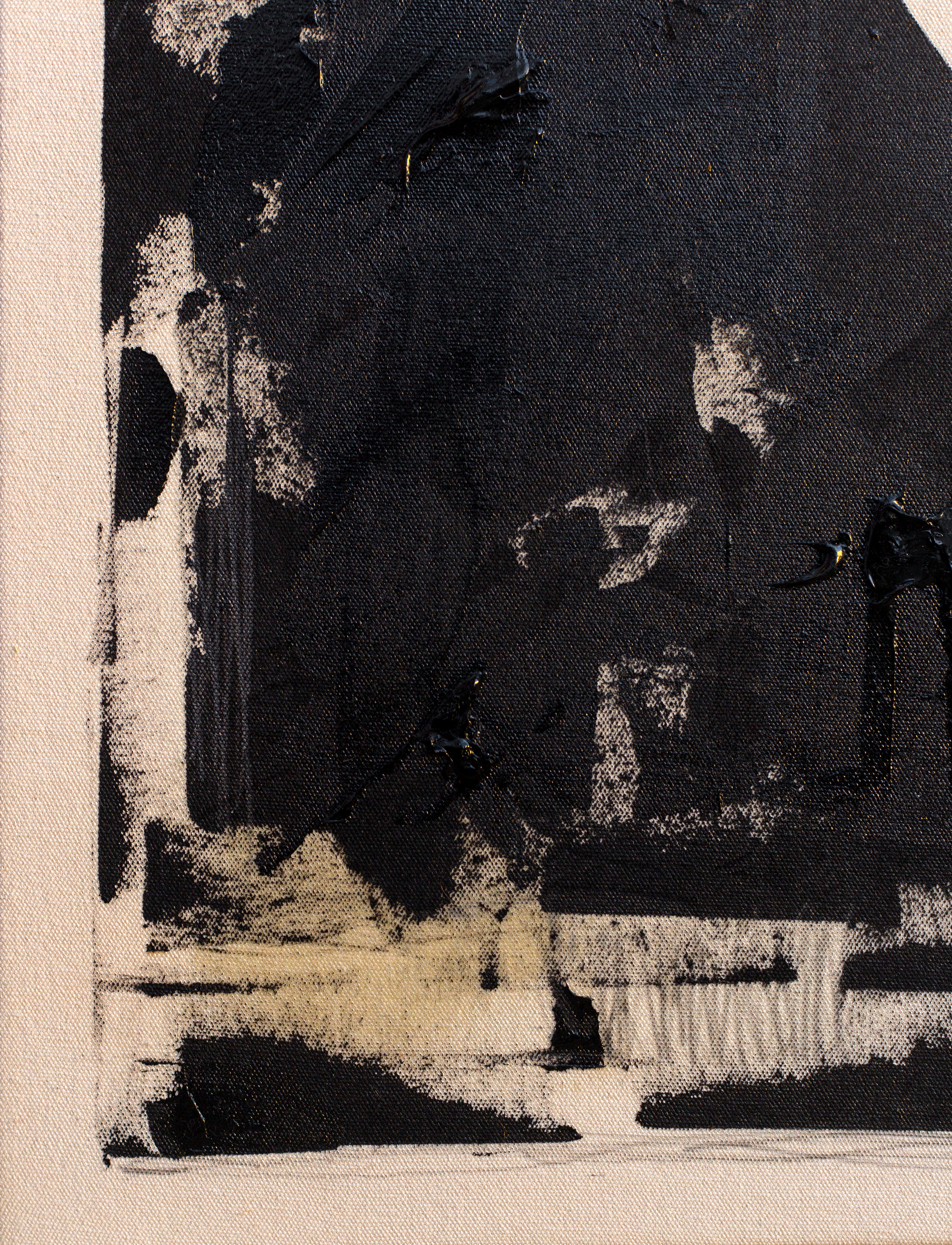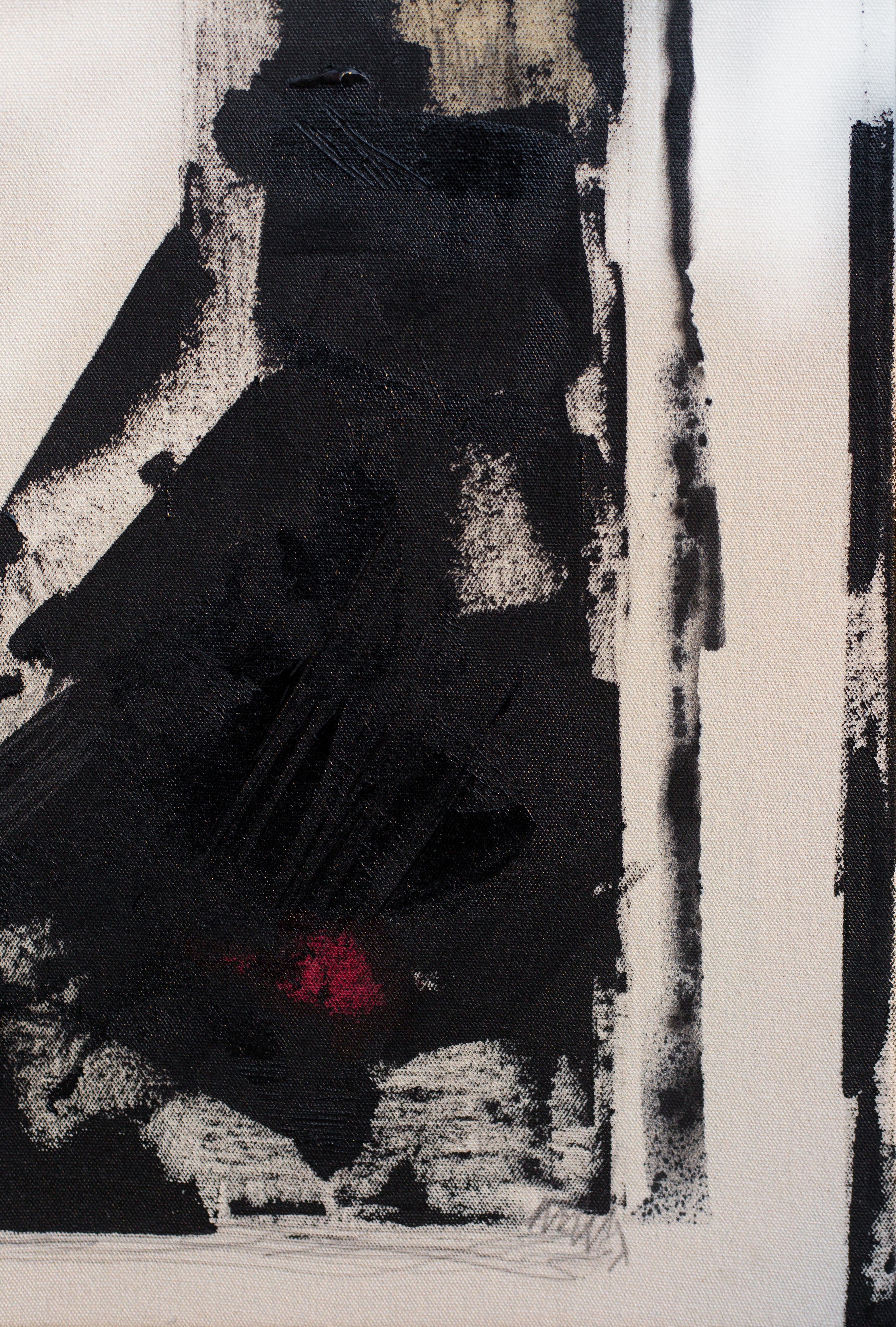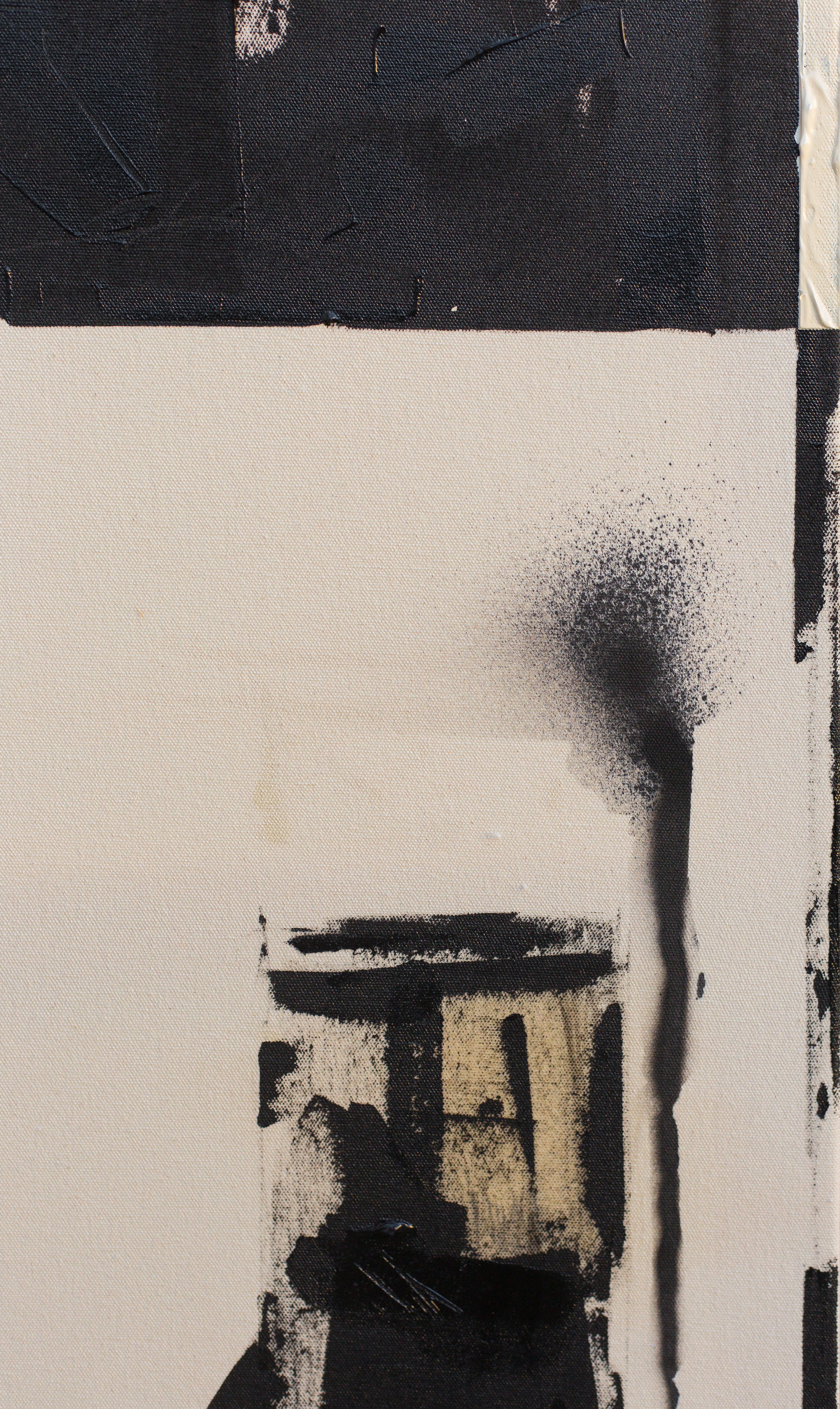 Acryl, Spray, Antibuff-Tinte, Olivenöl, Bleistift auf ungrundierter Leinwand.
