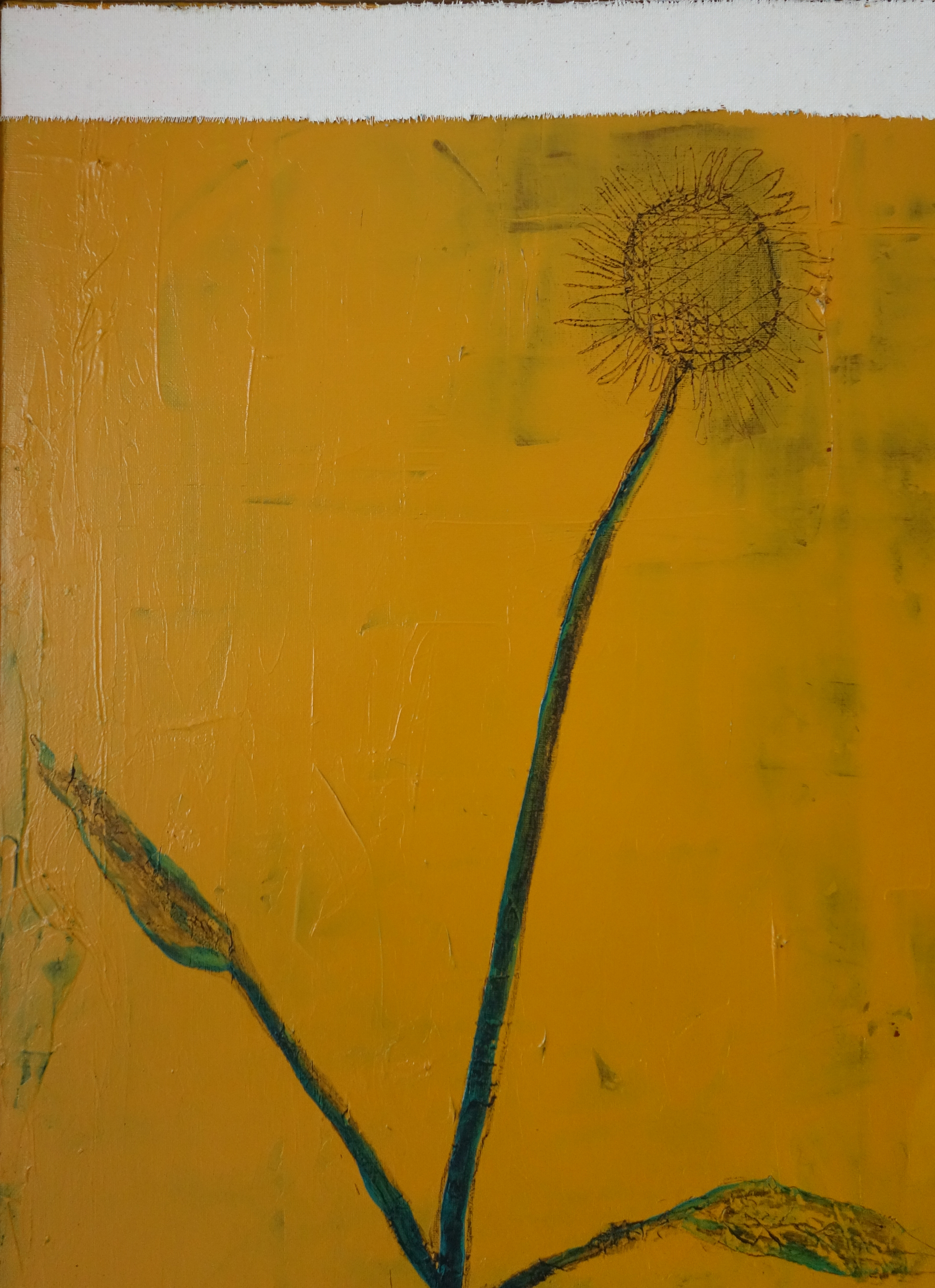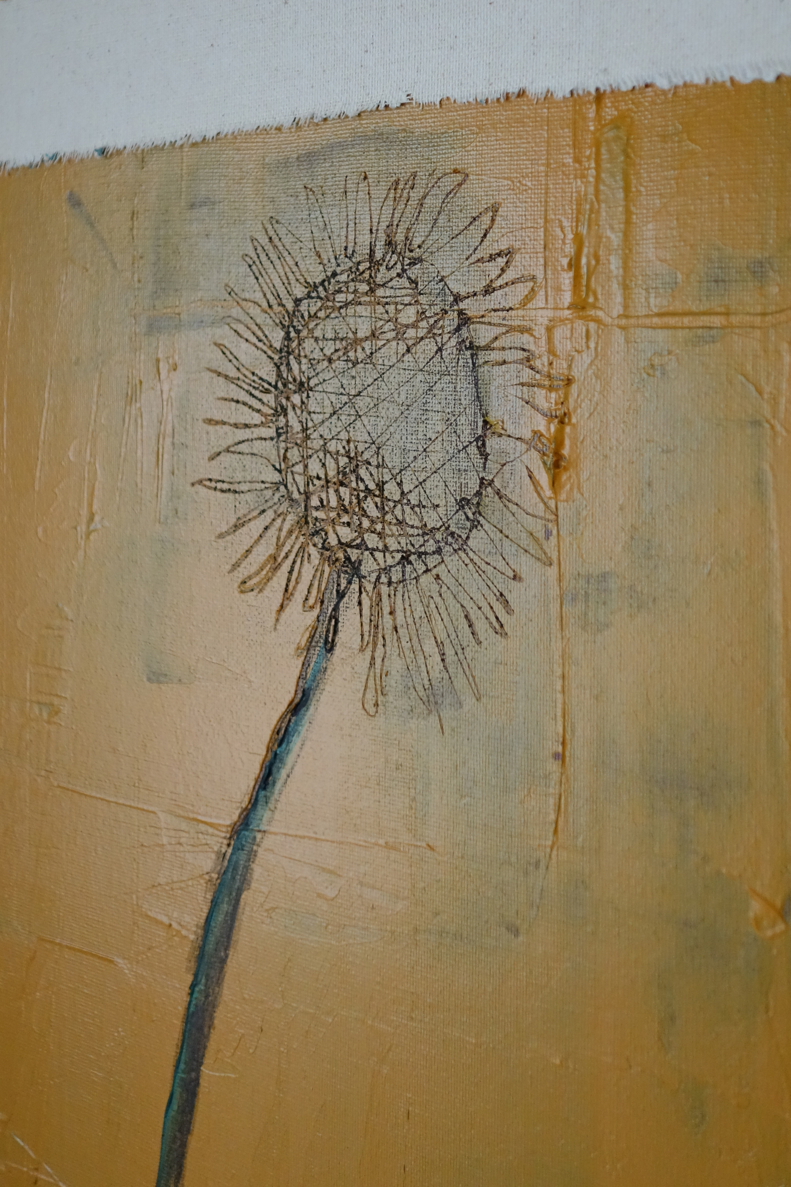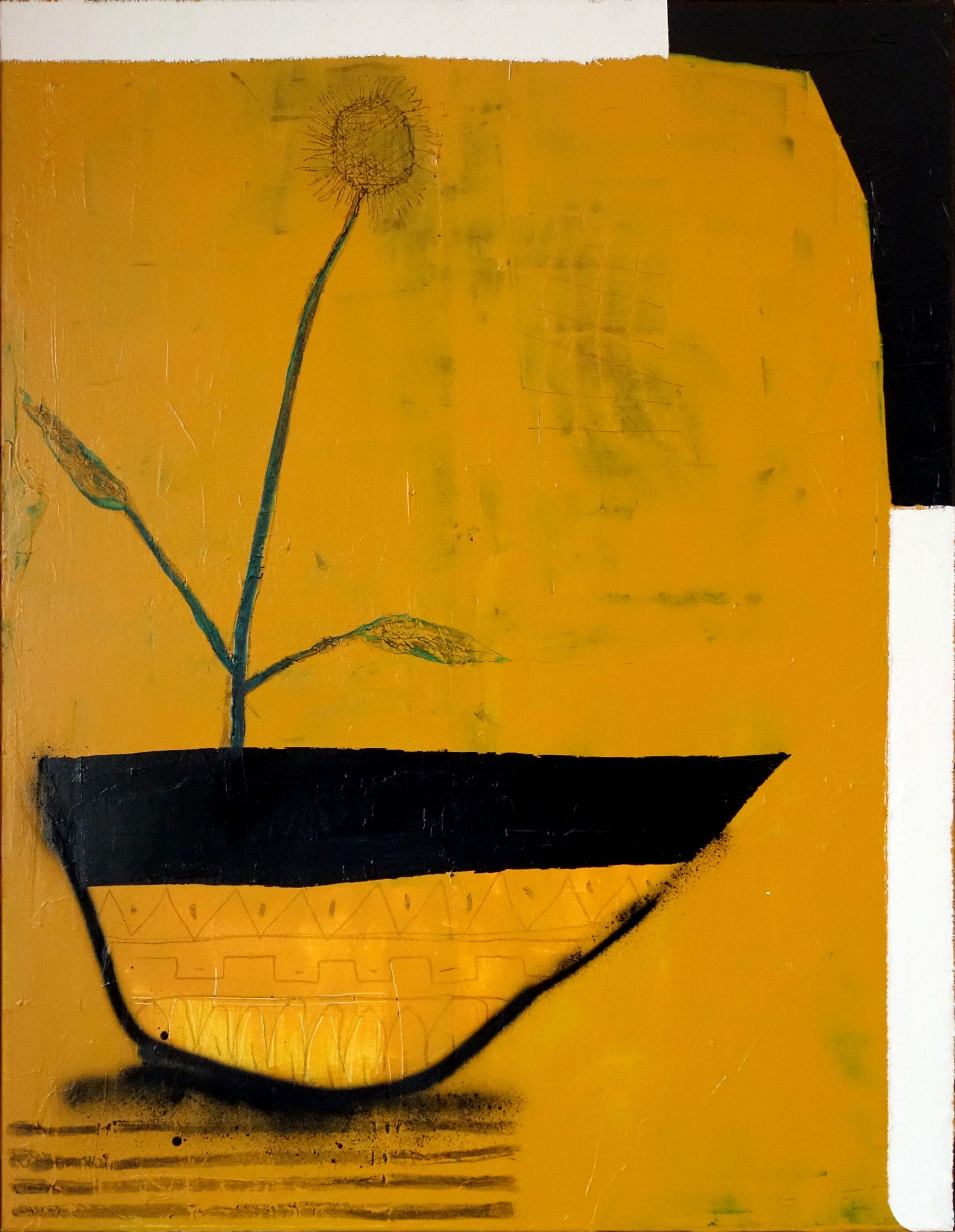 Acryl, Gouache, Öl, Sprühfarbe und Textil auf Leinwand