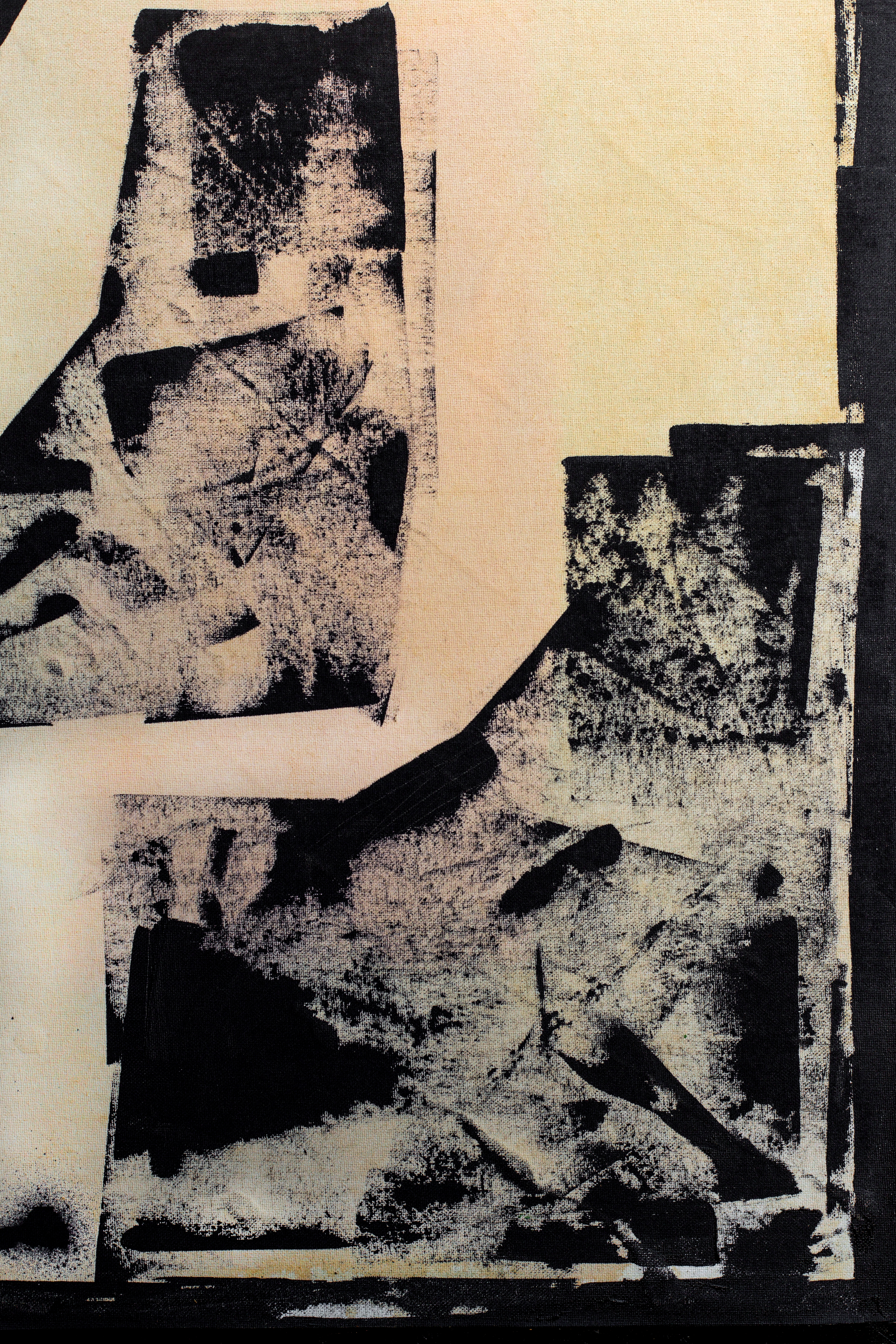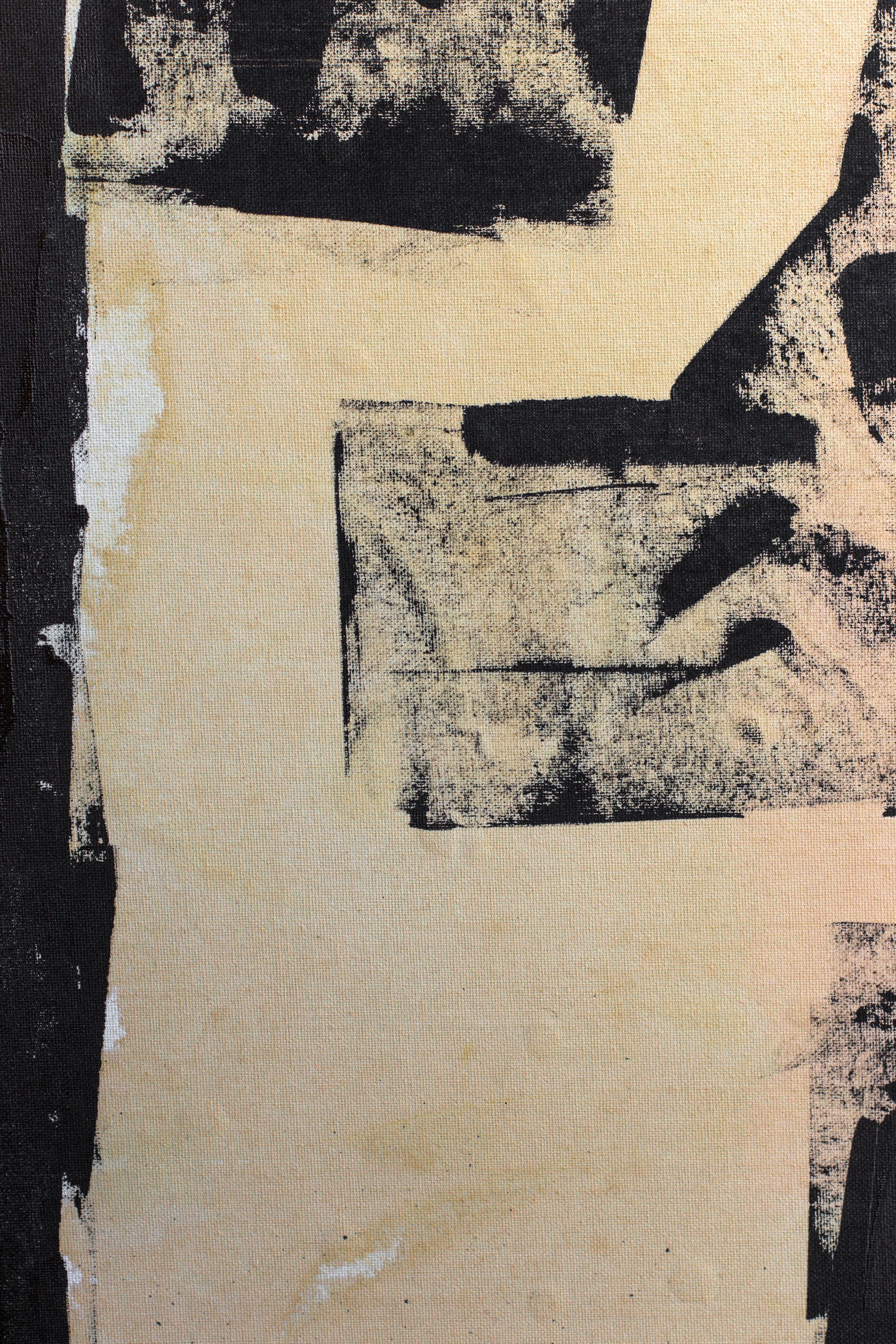 Acrylic, Spray paint, Antibuff INK, Coffee, Textile on canvas.