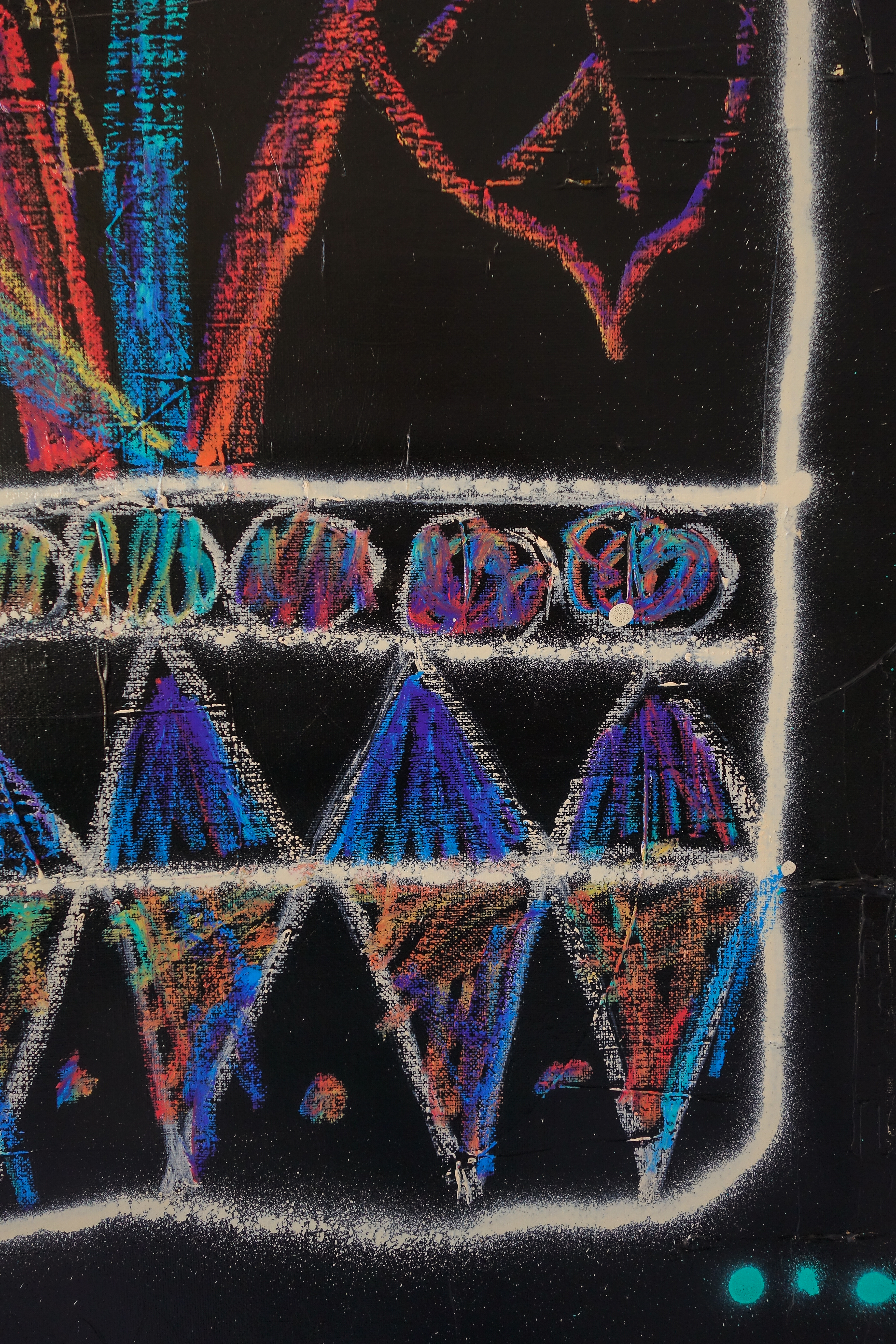 Acrylic, Marker, Pencil, Spray paint, and Textile on Canvas