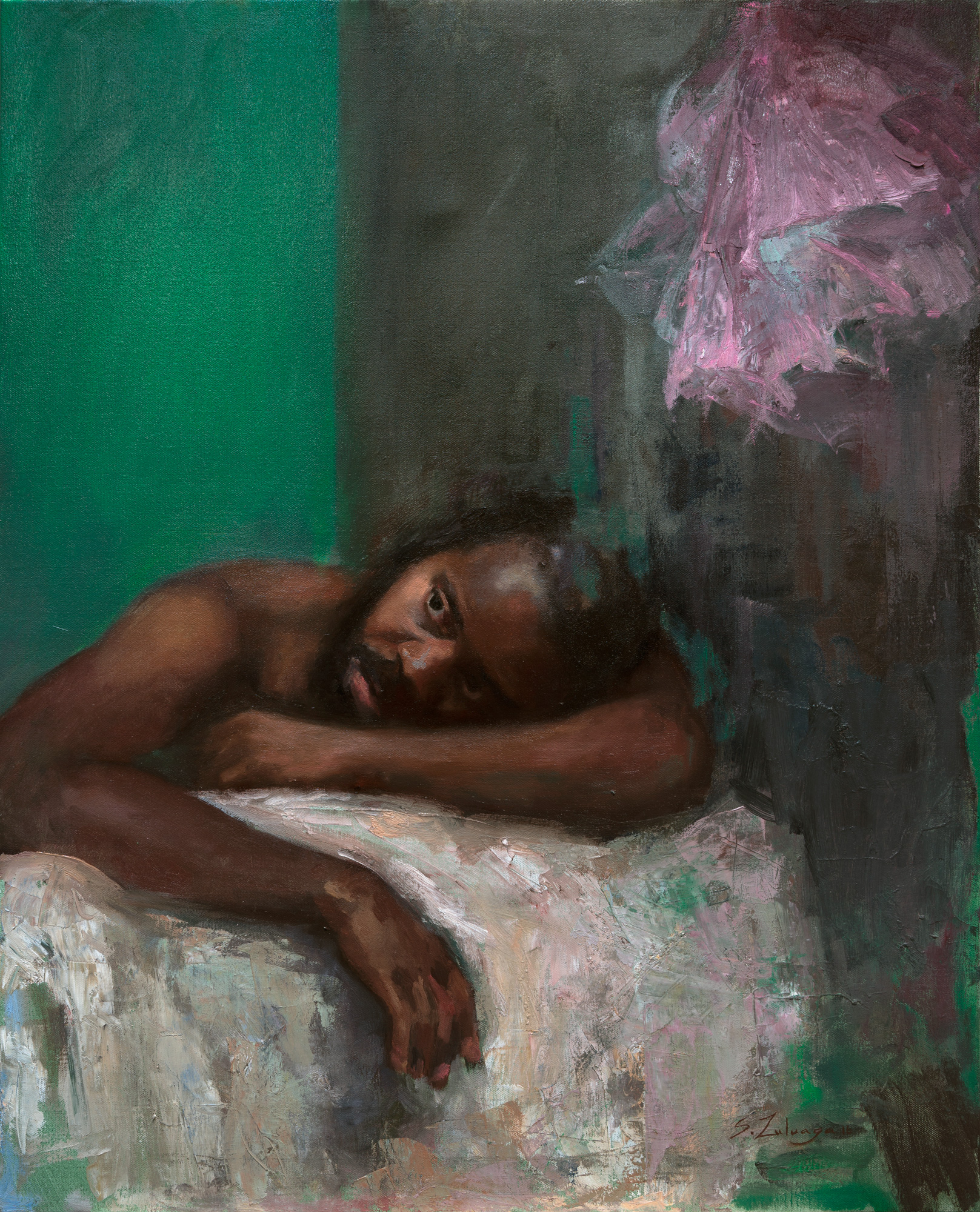 Block-in of values across the entire figure. You will establish the fall of light, adjust color and value relationships, and begin to bring the painting into coherence.