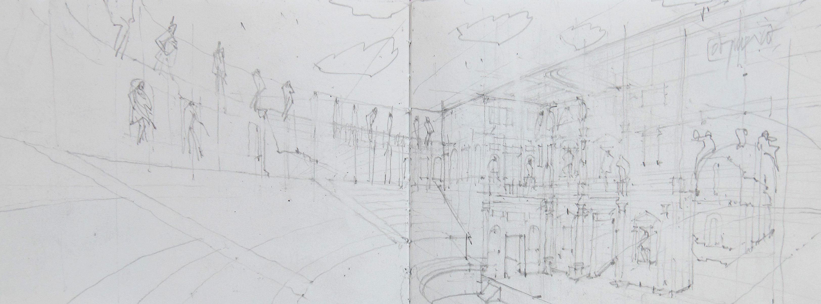 Der Bleistift dient uns als Navigationsinstrument im Raum. Anhand unterschiedlicher Aufgabenstellungen erproben wir sukzessive eine breite Palette an zeichnerischen Möglichkeiten und Darstellungsformen: freies, analytisches, räumliches bzw. perspektivisches, konstruktives Zeichnen und konzeptuelles Zeichnen.
