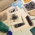 Fotokopien, Texte und Laserausdrucke werden mithilfe eines organischen Lösungsmittels – Lavendel- oder Orangenöl – auf Papier transferiert. Durch das Abreiben verliert das Ausgangsbild an Schärfe und Farbe; das entstehende neue Bild erinnert in seiner Ästhetik an ein Aquarell. Die Technik dient der Hintergrundgestaltung und der Vorbereitung des Bildgrundes.